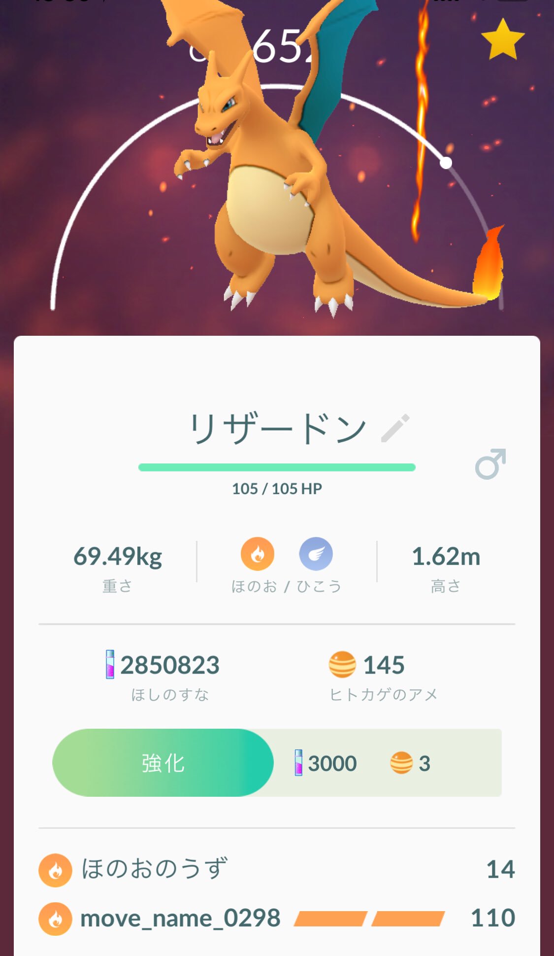 画像 ヒトカゲをリザードンにしましたブラストバーンかと思いきやmove Name 0298 ポケモンgo T Co Me6vum4gt0 まとめダネ